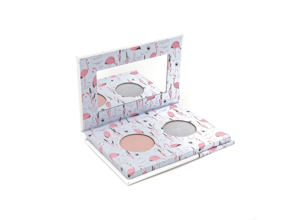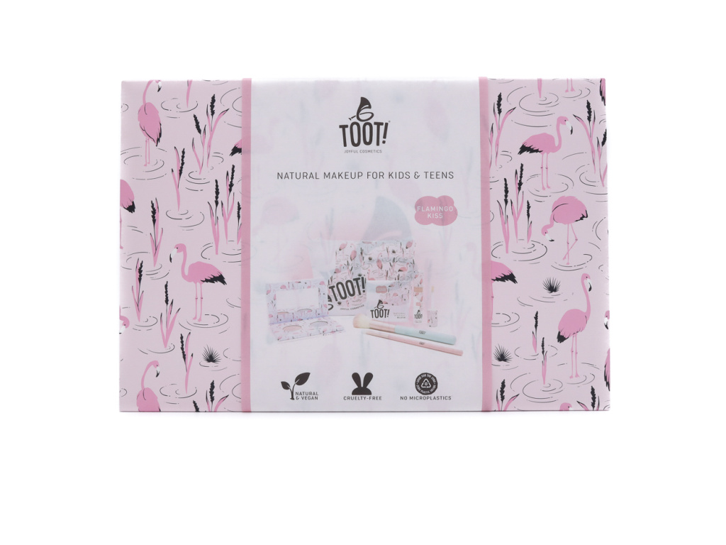 V krásnom sete, ktorý poslúži aj ako vianočný či narodeninový darček, nájdete dvojicu minerálnych očných tieňov v odtieni Flamingo a Parot doplnených o zabudované zrkadielko, lícenku Blushing Flamingo, prírodný lesk na pery Flamingo Kiss v jemnej ružovej farbe a štetec na aplikáciu lícenky aj očných tieňov. To všetko zabalené v kozmetickej taštičke s motívom plameniakov. Odtieň Fabolous Flamingo je klasická ružová. Odtieň Pretty Parrot je svetlo-modrá farba.