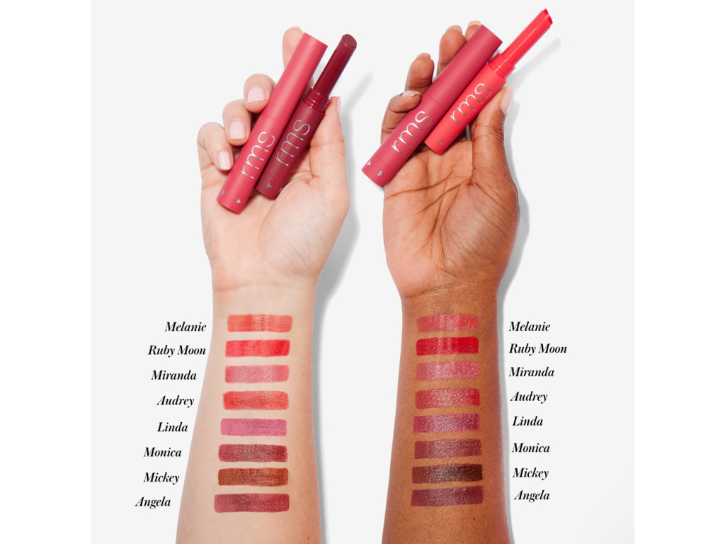 Inovatívne zloženie, v ktorom bola bežná voda do veľkej miery nahradená organickou ovocnou vodou z plodov Bitter Cherry, ktorá je hydratačná, zjemňujúca a pokožku revitalizuje. Obohatené o RMS Adaptogenic Herbal Blend, mix bylín, ktoré pokožku skľudnia, zjemnia a hydratujú, extrakt zo slivky Kakadu a komplex voskov, vďaka ktorým majú rúže zamatový feeling, ktorý poznáte z pleťových sér.