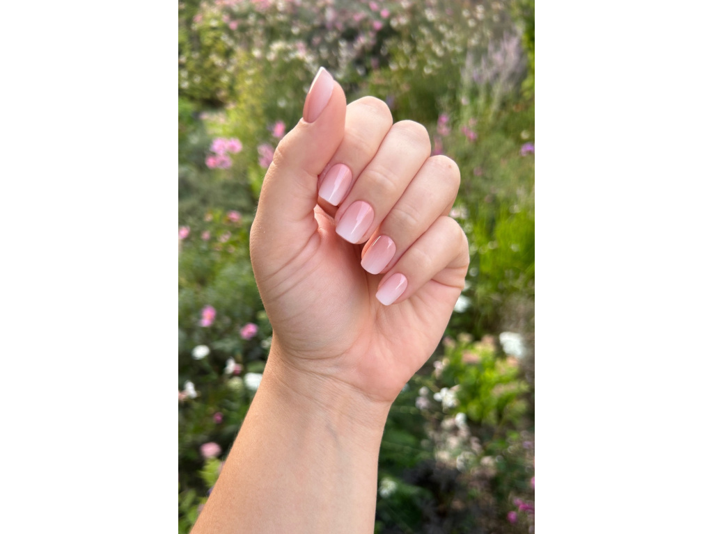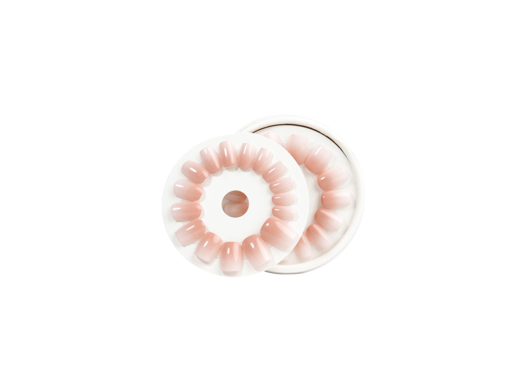 Set press-on nechtov v tlmenom nude-ružovom odtieni s jemným ombre efektom.